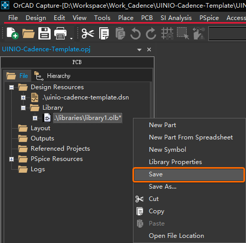 UINIO.OLB,并将其保存到 UINIO-Cadence-Template