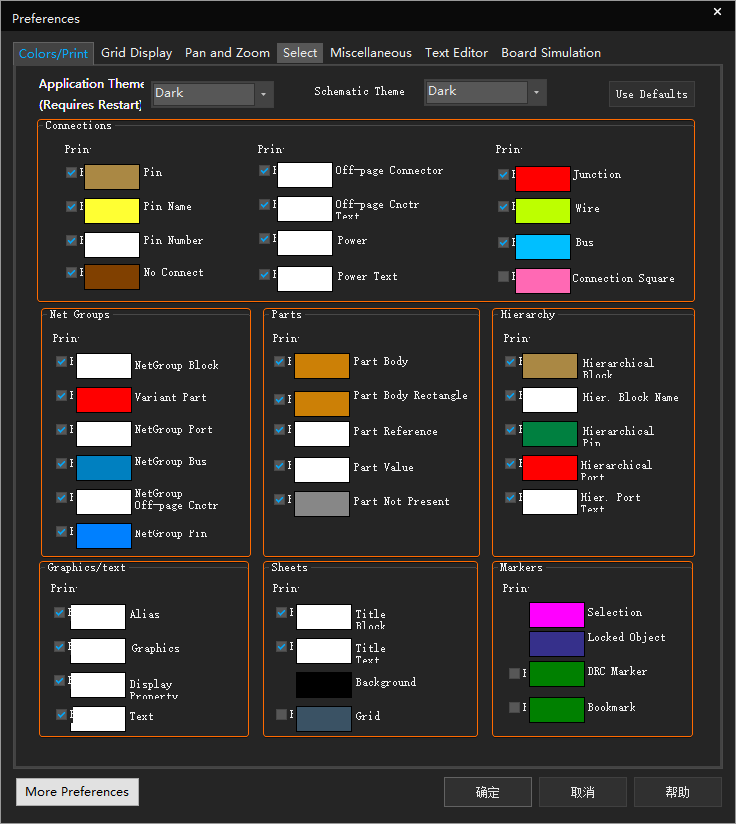 Preferences 对话框里,修改【Colors/Print】选项卡下的