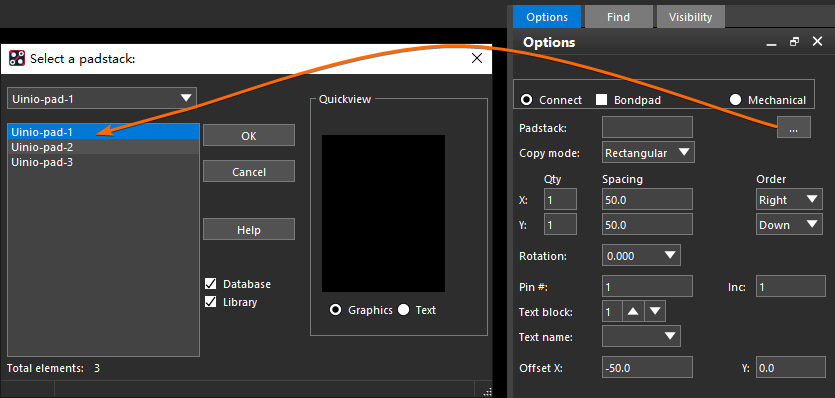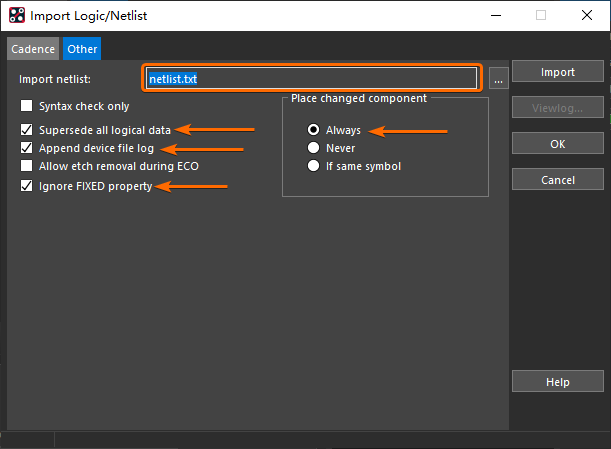 最后,就可以在 Allegro PCB Editor 右侧控制面板上的【Options】选项卡里,点击【...】按钮进行电路网络的分配: