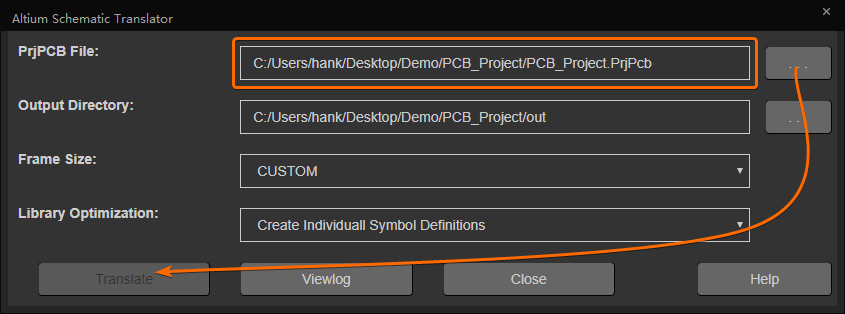- 点击对话框当中的【Translate】按钮,就可以将 OrCAD 所需的