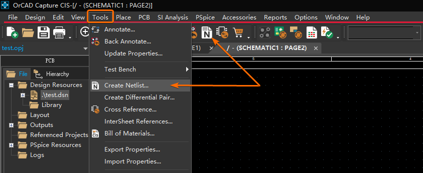 - 鼠标依次点击 OrCAD 菜单栏上的