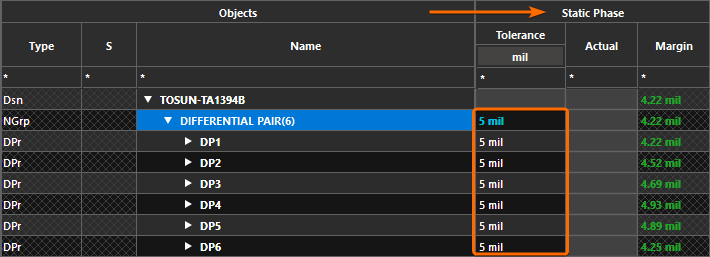 Static Phase -> Tolerance列参数; - 返回 Allegro 的 PCB
