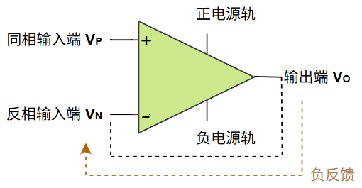 如果直接把运算放大器的输出端 \(V_O\) 与反相输入端 \(V_N\) 连接在一起,实时的将输出结果反馈至反相输入端,进而形成动态的负反馈(Negative Feedback)网络: