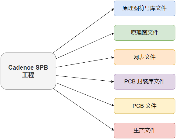 Allegro/OrCAD SPB 17.4 套件当中的 OrCAD Capture CIS 工具主要用于原理图设计,而 Allegro PCB 工具则主要用于 PCB 绘制。一个完整的 Cadence SPB 工程,会同时包含有元件库文件原理图文件PCB 库文件网表文件PCB 文件生产文件