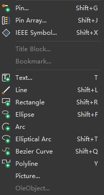【I】 缩小工作区内容。 【Shift + G】 放置一个原理图符号引脚。