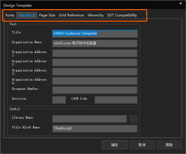 选择 OrCAD Capture CIS 主界面菜单栏上的【Options -> Design Template】,此时会弹出下面的 Design Template 对话框: