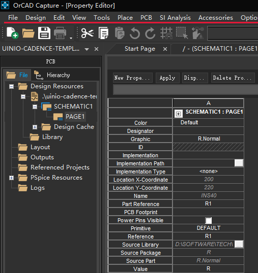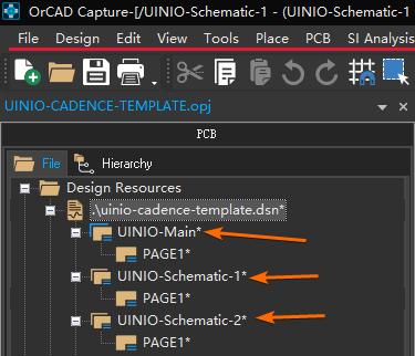 这个时候在 UINIO-Cadence-Template 目录下,呈现出的工程文件结构如下面所示,可以发现上面新建的 Libraries 目录,以及该目录下新增的 UINIO.OLB 符号库文件: