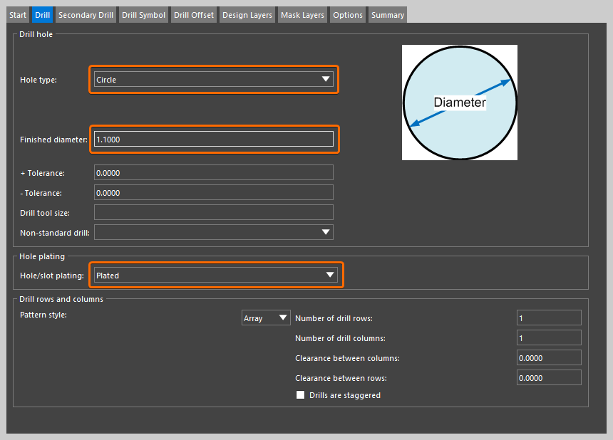 Place Pin Array 对话框当中,各个属性的功能说明如下面列表所示: