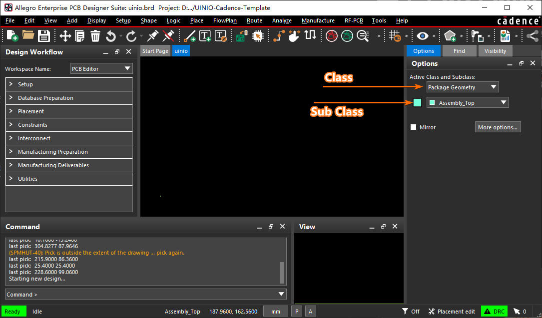 最后,就可以在 Allegro PCB Editor 右侧控制面板上的【Options】选项卡里,点击【...】按钮进行电路网络的分配: