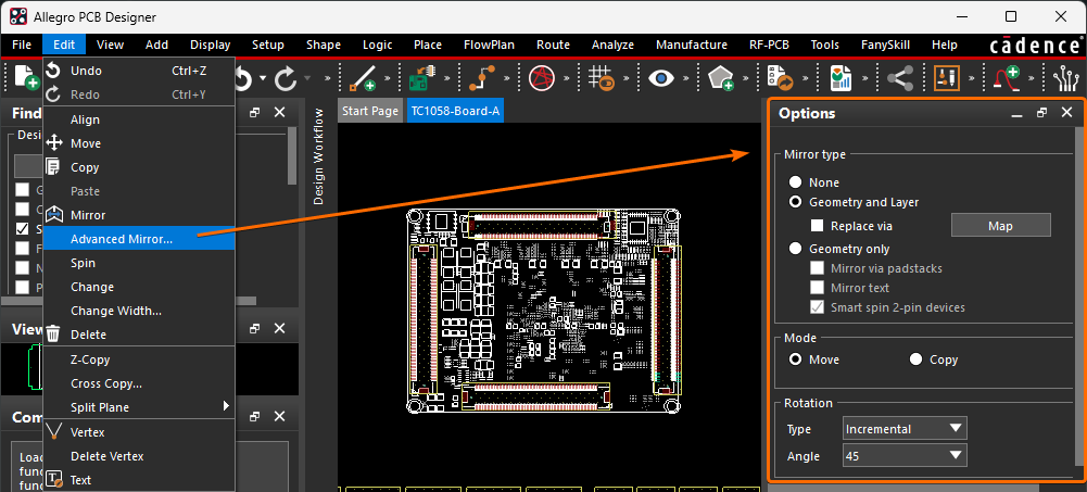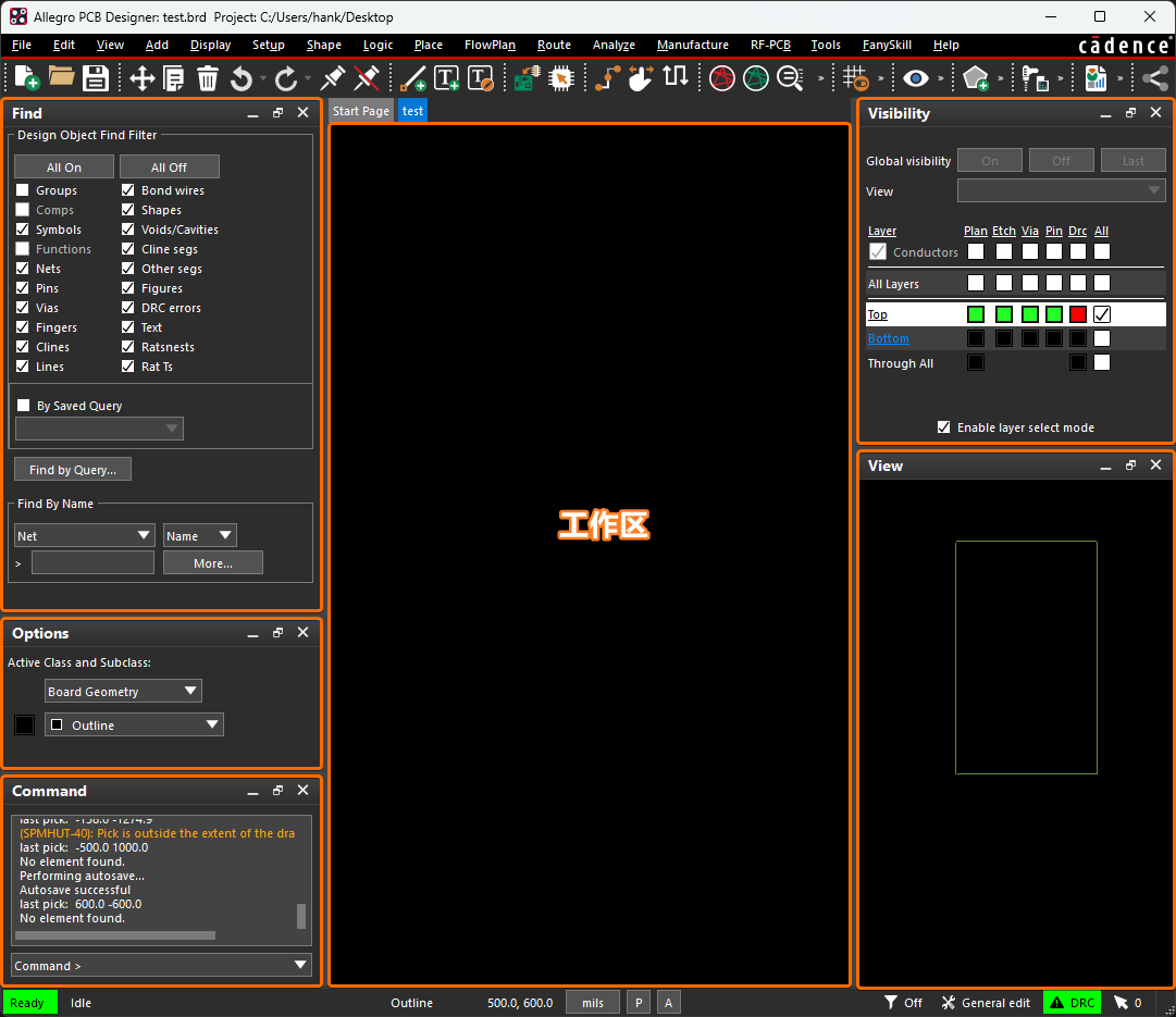 Application Mode -> General Edit; - Allegro 侧边栏的【Find】工作区里只勾选