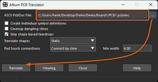 - 点击对话框当中的【Translate】按钮,就可以将 OrCAD 所需的