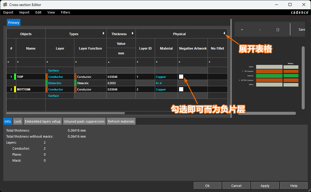 Regular Pad用于正片层、恒温焊盘Thermal Relief用于正片和负片层、负焊盘Anti Pad用于负片层(其中的Diameter参数表示的是过孔直径); - 【Mask Layer】:主要设置 阻焊层